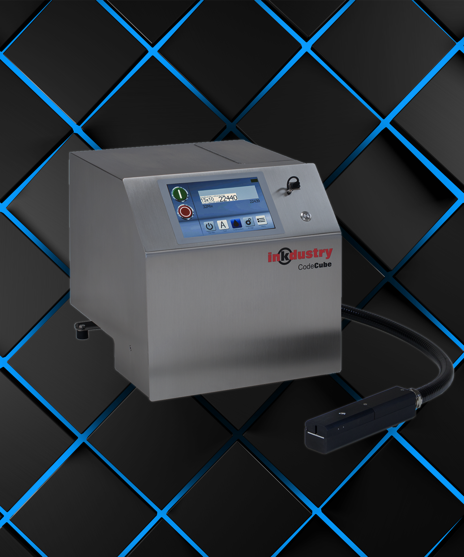 As the first system of its kind, the The user interface works with informative symbols. The menues are clearly structured without complicated menu trees. Print text design is fully grafically with up to 48 pixel in height. Beside the quality printmodes, also highspeed printmodes can be installed. By using a usb-stick, text and configurations can be transfered easily. The network connection which is integrated as standard, allows easy integration into the company intranet.